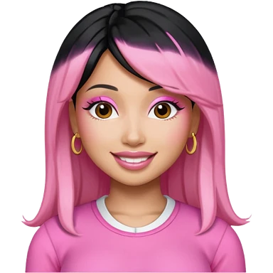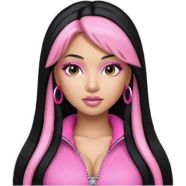 Nicki Minaj long black hair with pink highlights, pink outfit emoji