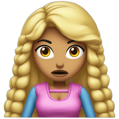 Nicki Minaj long black hair with pink highlights, pink outfit emoji