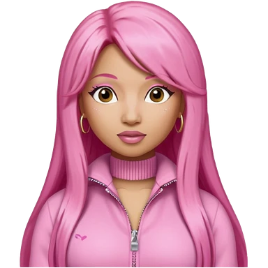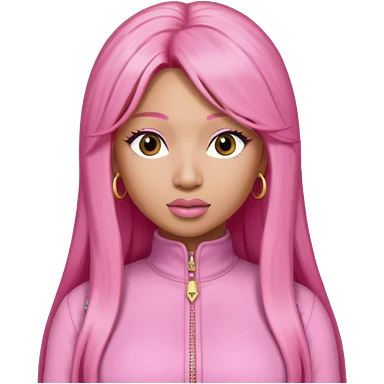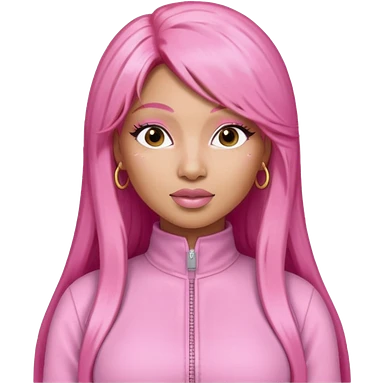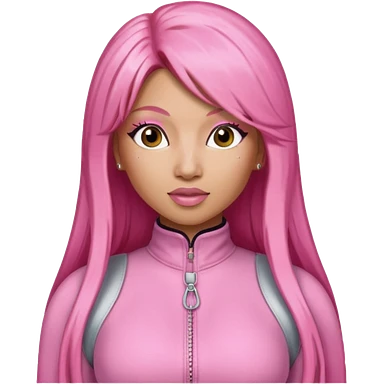Nicki Minaj long black hair with pink highlights, pink outfit emoji | AI Emoji Generator
