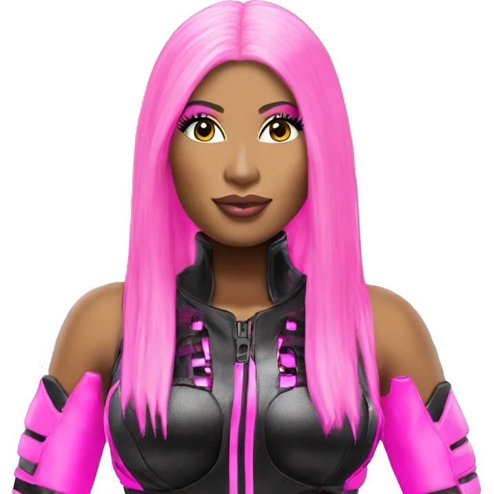 nicki minaj wearing an electronic cyber neon black and pink outfit head shot emoji | AI Emoji Generator