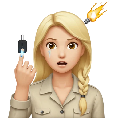 Blonde woman being electrocuted on the finger by a plug socket emoji