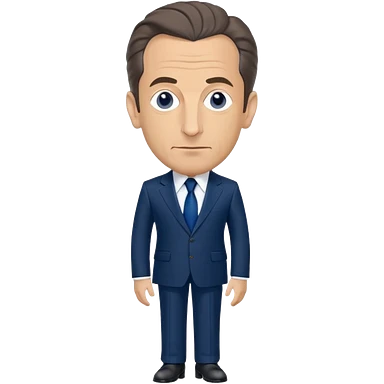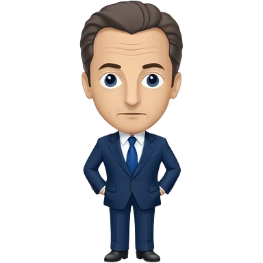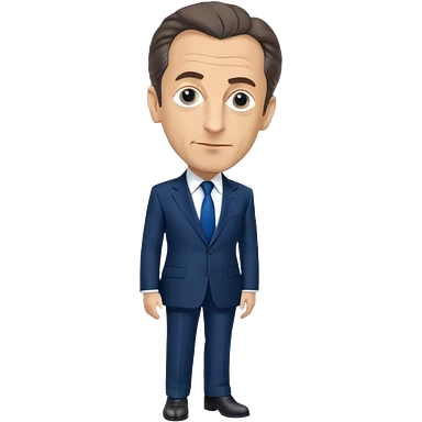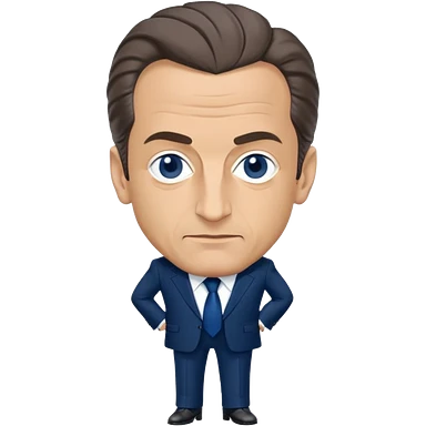 figure of Nicolas Sarkozy with an oversized head and small body, standing, wearing a navy suit and blue tie, highly recognizable face, simplified details emoji