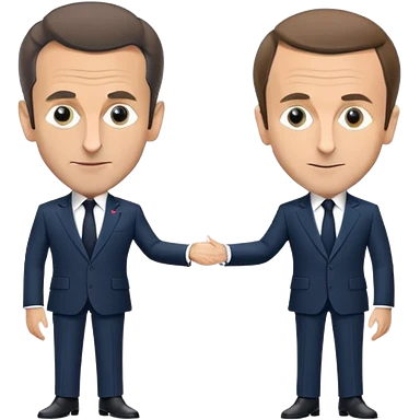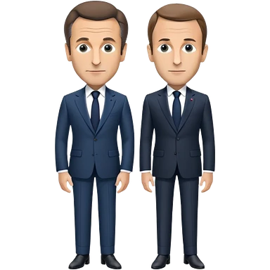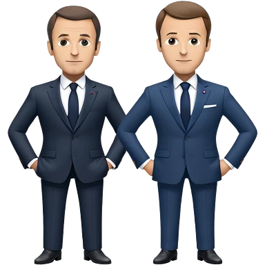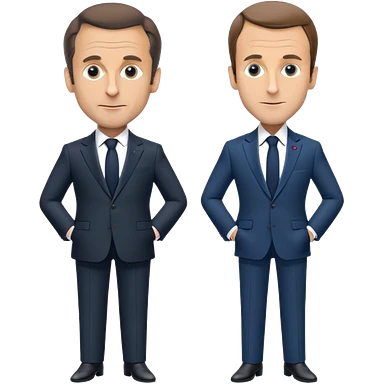 figures of Nicolas Sarkozy and Emmanuel Macron standing side by side, both with oversized heads and small bodies, wearing suits, highly recognizable faces, simplified details emoji