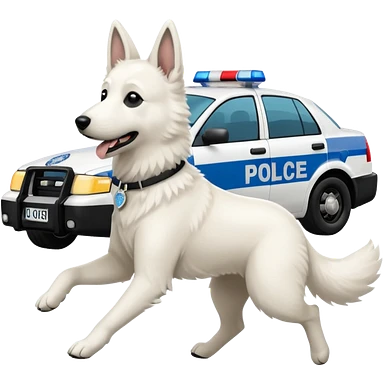 White belgian Shepard Runs away from police car and says "ACAB" emoji