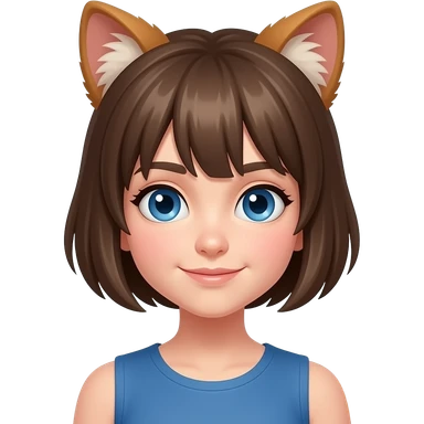Niña com pelo corto pero con una cola y Blanca ojos azules pelo cafe emoji
