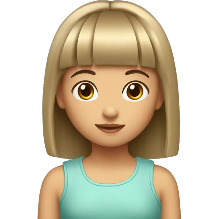 mujer morena con flequillo, pecas, ojos marrones, labios finos emoji