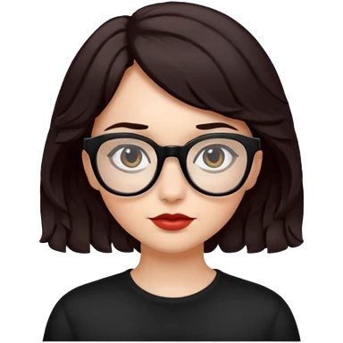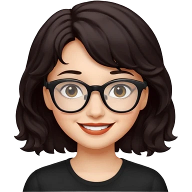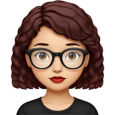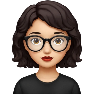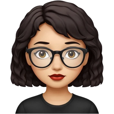 niña con pelo corto con ondas color negro rojiso con lentes negros emoji
