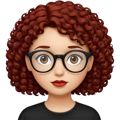 niña con pelo corto con rulos color negro rojiso con lentes negros emoji | AI Emoji Generator