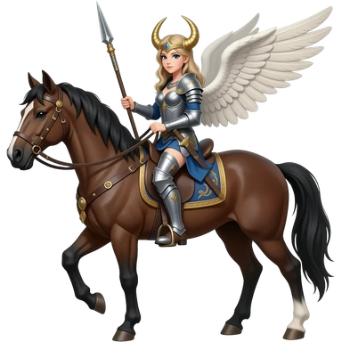 valkiria en caballo, alas en la cabeza, lanza, cuerpo completo emoji