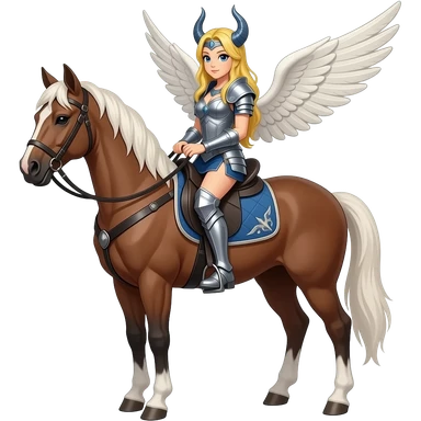 valkiria en caballo, alas en la cabeza, cuerpo completo emoji