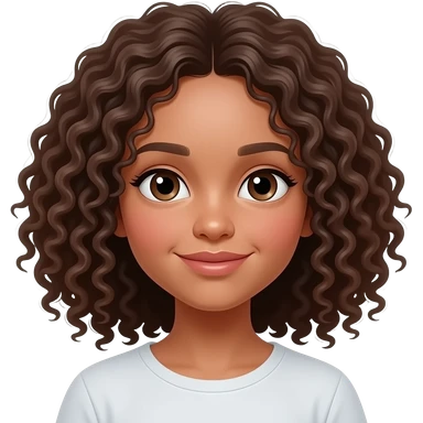 Niña de pelo rizado largo marrón y ojos marrones, piel canela emoji | AI Emoji Generator
