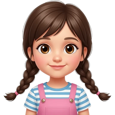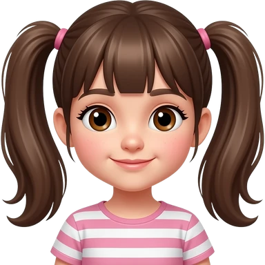 Niña pequeña con dos coletas muy largas marones y ojos marrones con ropa emoji | AI Emoji Generator