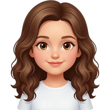 Niña 13 años pelo largo marrón, ojos grandes marrones, boca pequeña sonriente emoji