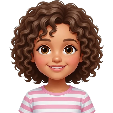 Niña pequeña pelo rizado largo ojos marrones piel blanca emoji