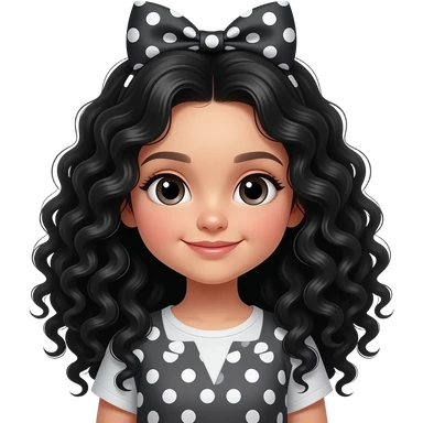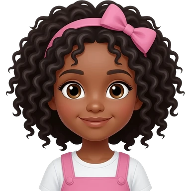 Niña pequeña con pelo negro muy rizado largo y lazo emoji