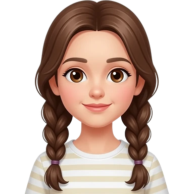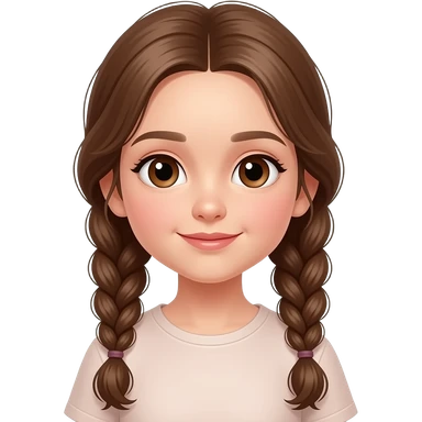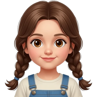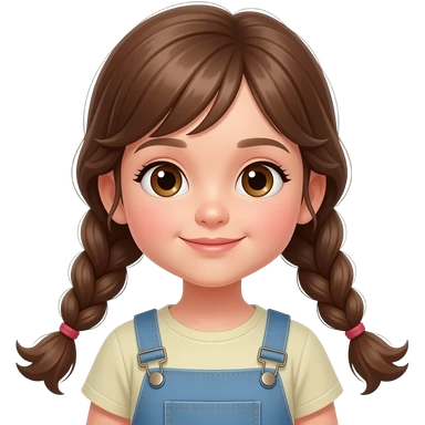 Una niña de 6 años, muy bonita, de piel blanca, con cabello largo y peinado de dos trenzas, con ojos marrones emoji