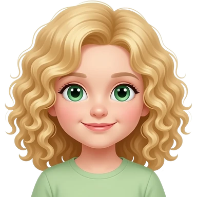 Niña rubia con el pelo muy rizado y los ojos verdes emoji | AI Emoji Generator