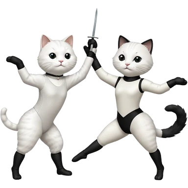 A white cat doing ballet and a black cat doing fencing emoji