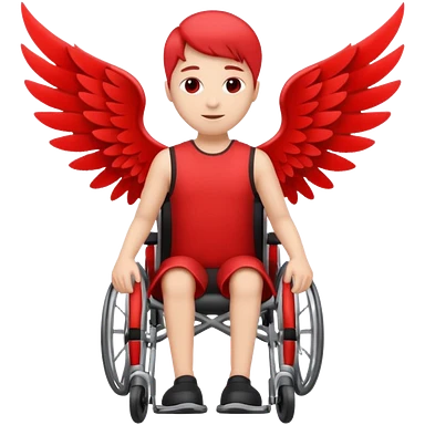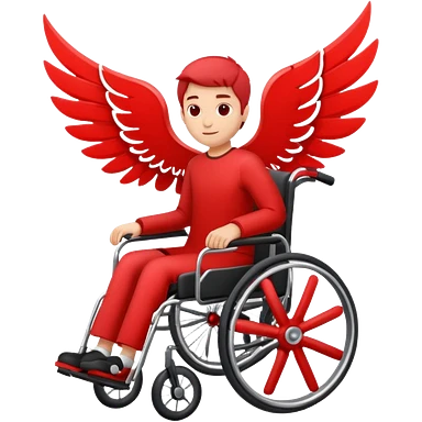 "A simple, red icon of a person in a wheelchair with stylized wings on their back, modern logo design, emoji style, white background" emoji
