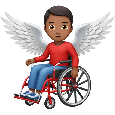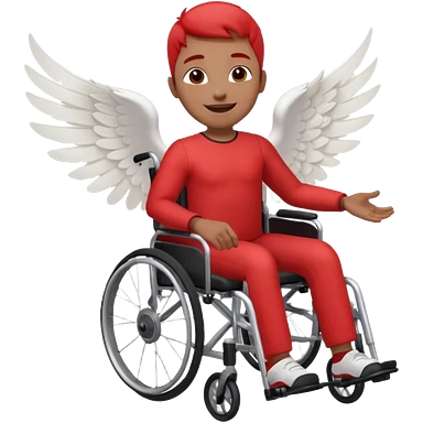 "Emoji representing mobility, speed, and overcoming obstacles, featuring a person in a red wheelchair with wings" emoji