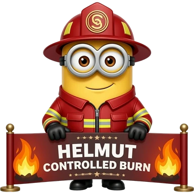 fire fighter minion aOT on helmet banner CONTROLLED BURN emoji