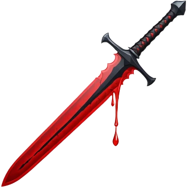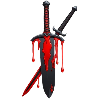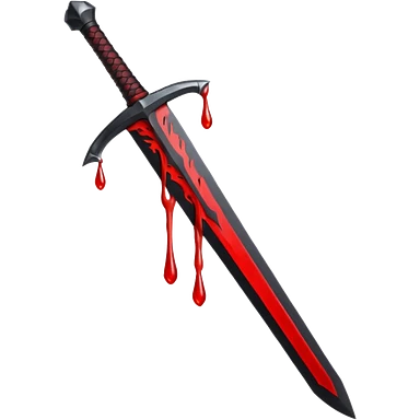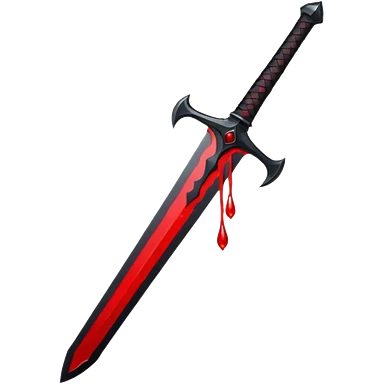iOS sticker, dark sword, black blade, red blood drop, minimal emoji
