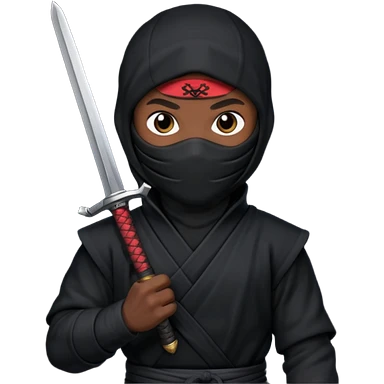 a ninja wearing black and white covering his face only eyes visible with a sword on his back emoji
