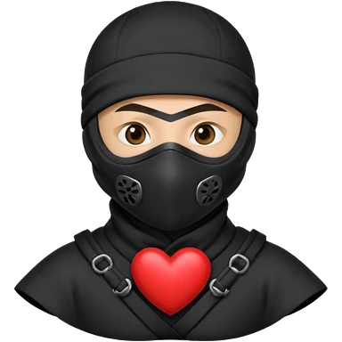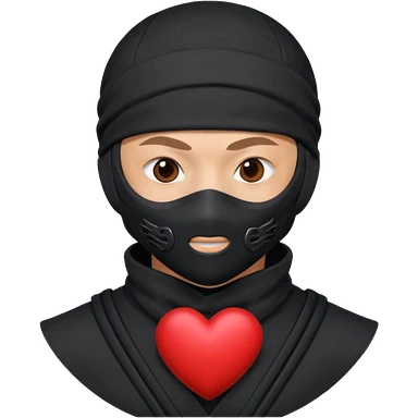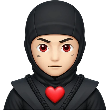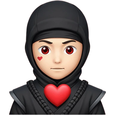 Ninja con ojos de corazón y una corazón emoji