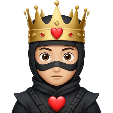 Ninja con ojos de corazón y una corana emoji