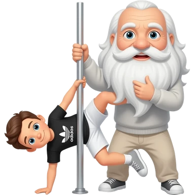 Niño y abuelo haciendo pole dance con un short negro adidas emoji