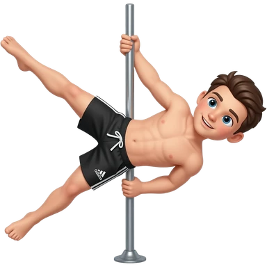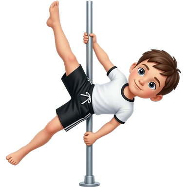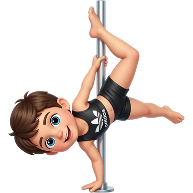 Niño haciendo pole dance con un short negro adidas emoji