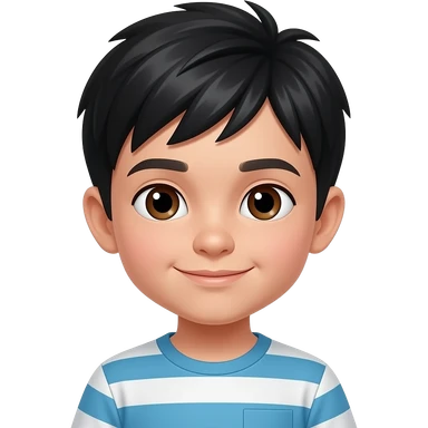 niño 5 años pelo negro ojos marrones flequillo hacia arribacara fina emoji