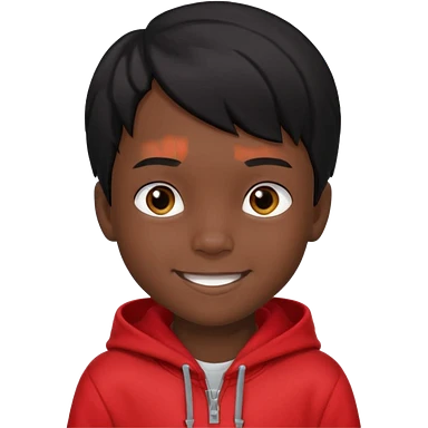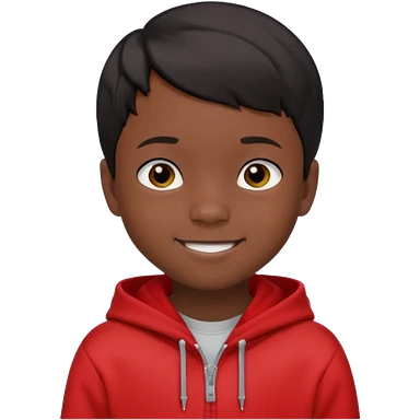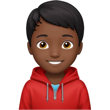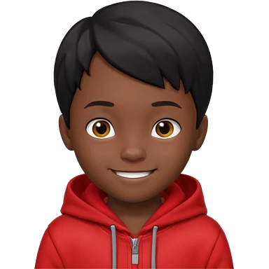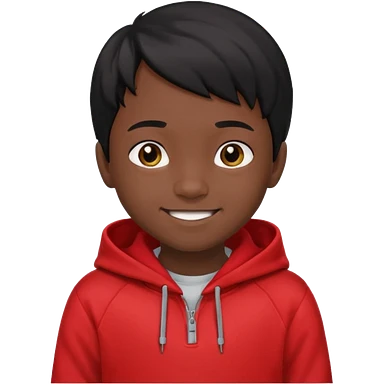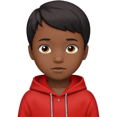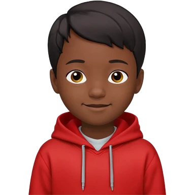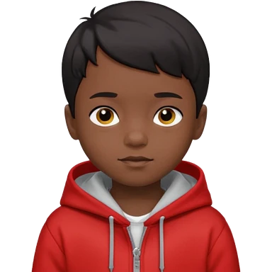 niño de 7 años, con pelo y piel negra. sudadera roja, pelo muy corto emoji