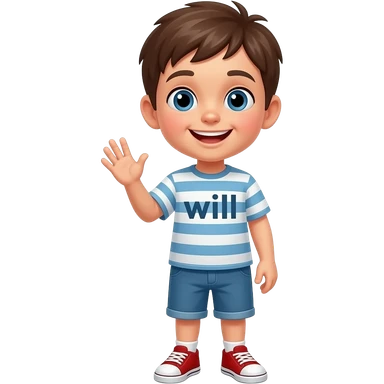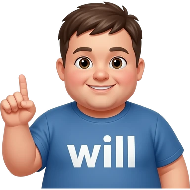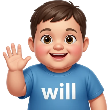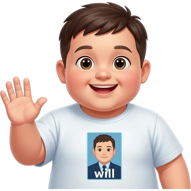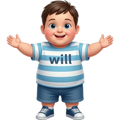 hazme un niño gordo que se le vea todo el cuerpo i este contento i que en la camiseta ponga Will en letras emoji