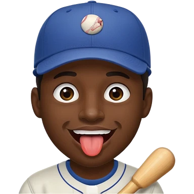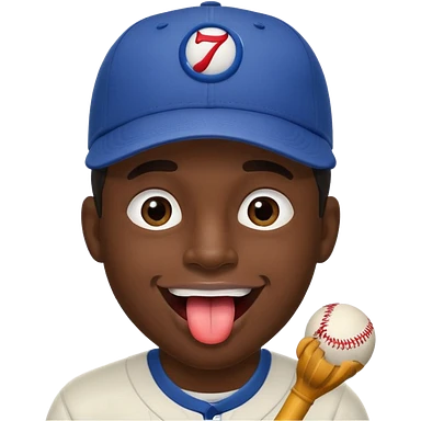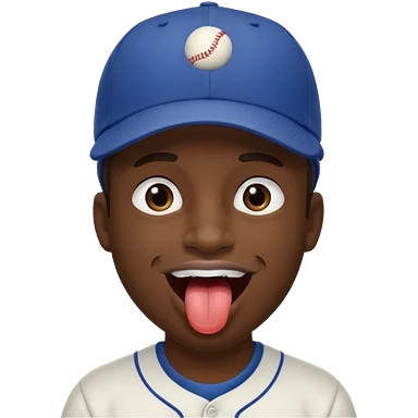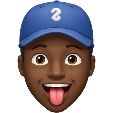 Emoji sacando la lengua con gorra y un dedo apuntando hacia la cara emoji
