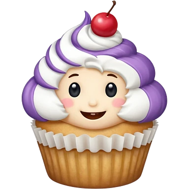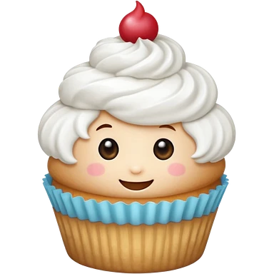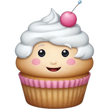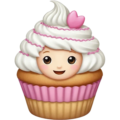 Un pequeño y adorable cupcake que ha cobrado vida, con un glaseado esponjoso que funciona como su "sombrero" o "pelo". Es la encarnación de la dulzura y la amabilidad. emoji