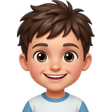Hazme un chico con pelo rebelde castaño, ojos azules y unas pecas. emoji