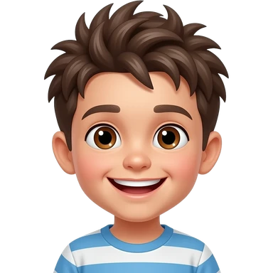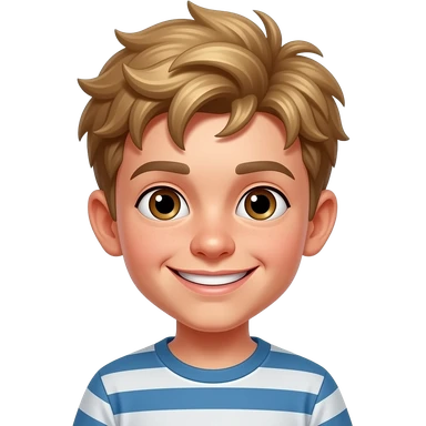 Niño pequeño pelo rubio oscuro liso rebelde feliz ojos marrones cara travieso emoji | AI Emoji Generator