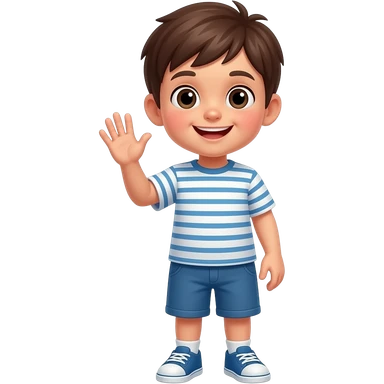 Bebe niño de 2 años rubio vestido de color azul y camiseta blanca emoji