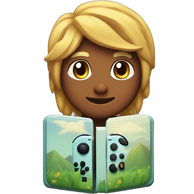 Create an emoji of a boy with brown hair and not-so-brown skin holding a Nintendo Switch and winking emoji
