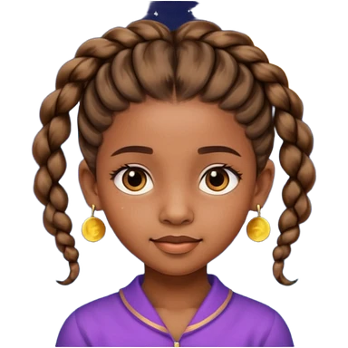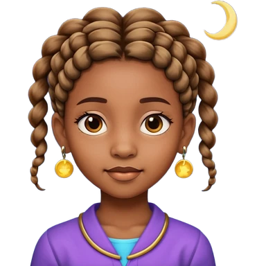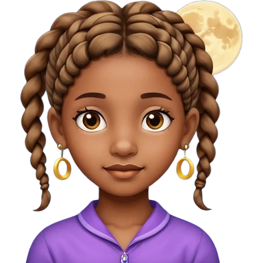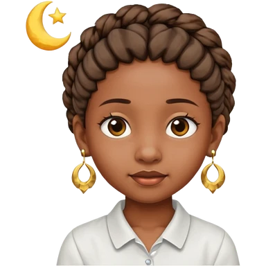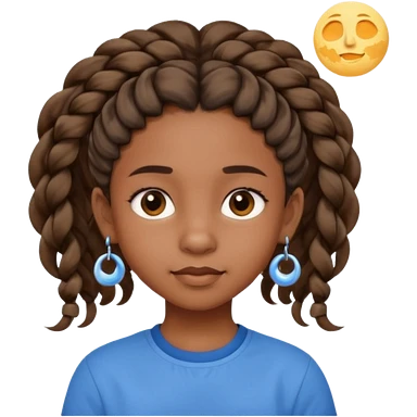a brown skin ten year old girl with short twists and moon earrings emoji