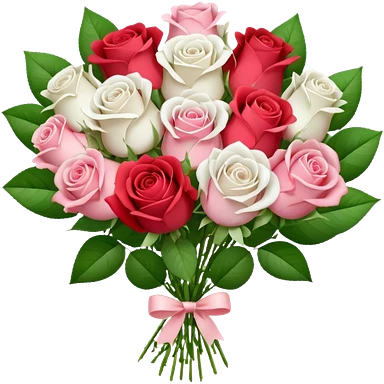 A paper-wrapped bouquet of fresh roses and baby’s breath emoji