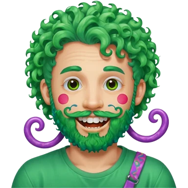 very colorful puffy green curly haired man just beard no mustache made out of candy wearing teeth-braces and excessive face tattoos just face emoji
