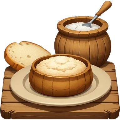 salt cellar and a loaf of peasant bread - still life composition emoji