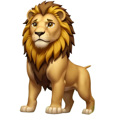 3D cartoon style, vertical 9:16. A dense green jungle with tall trees, morning sunlight beams through leaves, light fog. In the center stands a 5.5 ft strong muscular lion with golden fur, dark brown mane, amber eyes, light battle scars, no clothes, calm expression emoji