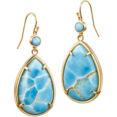 No emoji icons, no emoji faces, 8k quailty, clean, smooth design, isolated, hyper realistic, ultra sparkly, detailed, 14k yellow gold and Rare Genuine Larimar Raw Crystal earrings set, rendering. Full transparent background emoji | AI Emoji Generator