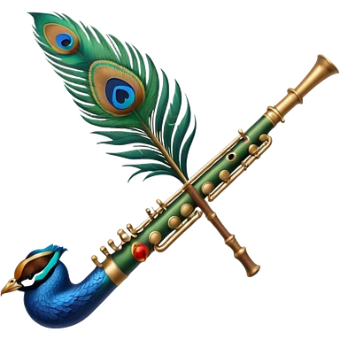 Normal Flute attached with peacock feather emoji