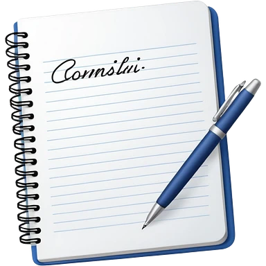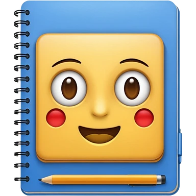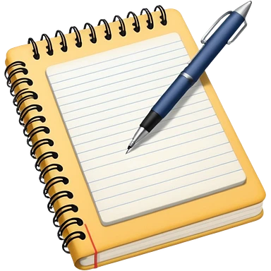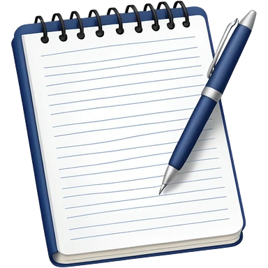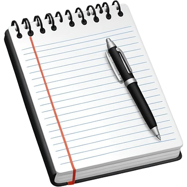 notebook with lined paper with cursive writing and a pen ontop emoji