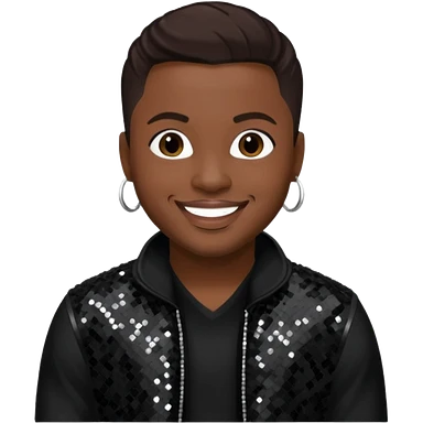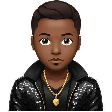 Nokio from Dru Hill with dark brown hair, black sequin outfit, dark skin emoji