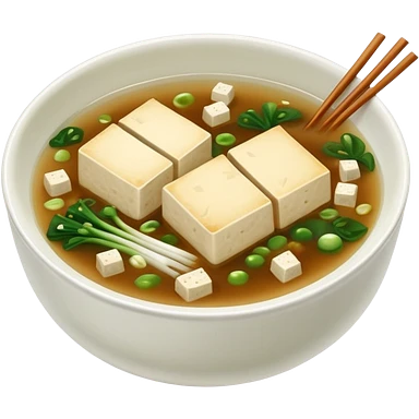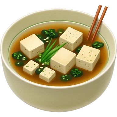 traditional minimalistic japanese miso soup with wakame, spring onion and tofu but no other toppings emoji